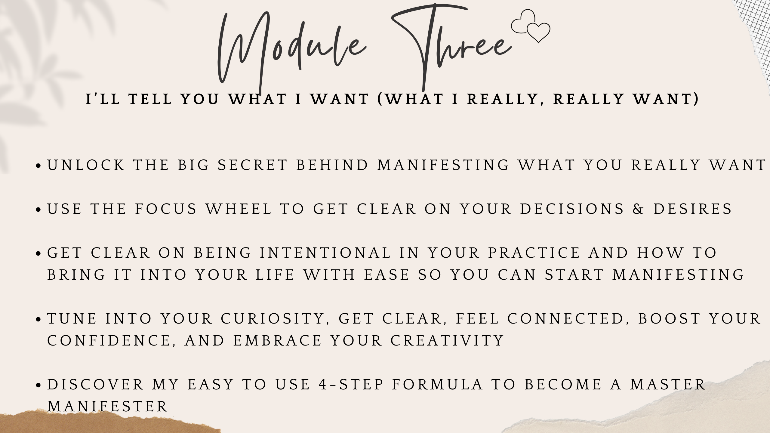 MODULE THREE: I'll Tell you What I want~ Unlock the Secret Behind Manifesting what you Really Want
