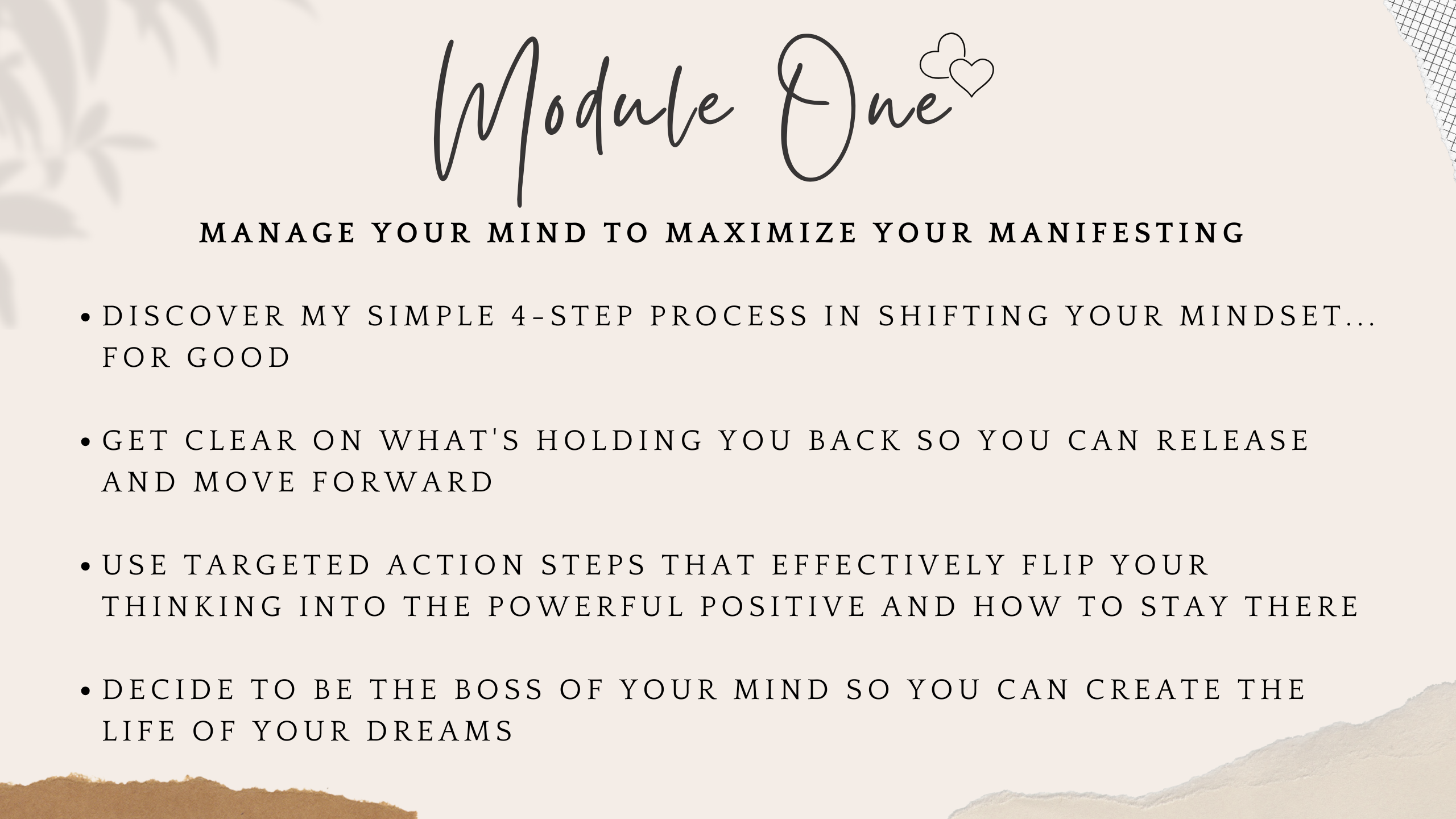 MODULE ONE: Manage your Mind to Maximize your Manifesting